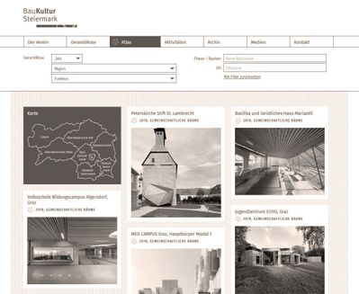 Der Verein BauKultur Steiermark hat seinen Online-Auftritt überarbeitet und die Webseite erstrahlt seither im neuen Glanz. Der neue Internettauftritt besticht durch ein modernes Layout und einer benutzerfreundlichen Handhabung, bei der die BesucherInnen gleich auf der Startseite über die aktuellen Veranstaltungen und Projekte informiert werden. Herzstück der neuen BauKultur Steiermark Webseite ist der GerambRosen-Atlas, bei dem alle Preisträger-Projekte der letzten Jahrzehnte abgerufen werden können.