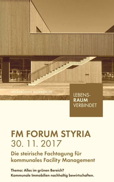Am 30.11.2017 findet die steirische Fachtagung für kommunales Facility Management statt. Unter dem Thema „Alles im grünen Bereich? Kommunale Immobilien nachhaltig bewirtschaften“ beleuchten vier Themenblöcke die Felder Schulbau, Energie, neue Finanzierungsformen und Investitionsmodelle sowie den nachhaltigen Umgang mit Leerstand.