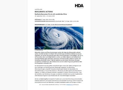 Partner programme steirischenherbst’24- Bioclimatic Talks! Discussion with architects and experts from research and industry Sept 28, 2024, 11 am, HDA, Mariahilferstraße 2, 8020 Graz