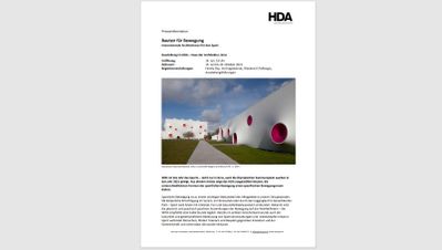 2021 ist das Jahr des Sports – nicht nur in Graz, auch die Olympischen Sommerspiele wurden in das Jahr 2021 gelegt. Aus diesem Anlass zeigt das HDA ausgewählte Bauten, die unterschiedlichsten Formen der sportlichen Bewegung einen spezifischen Bewegungsraum bieten. Das Spektrum der in der Ausstellung gezeigten Beispiele aus ganz Europa präsentiert beispielhaft unterschiedliche planerische sowie konstruktive Ansätze und geht auch auf historische soziale Fragen zu Sport und Bewegung im städtischen und ländlichen Alltag ein. Allen ausgewählten Bauten gelingt ein gehaltvoller und ästhetischer Beitrag nicht nur für die Umgebung in Stadt oder Natur. Ausstellungseröffnung: 14. Juli 2021, 19 Uhr