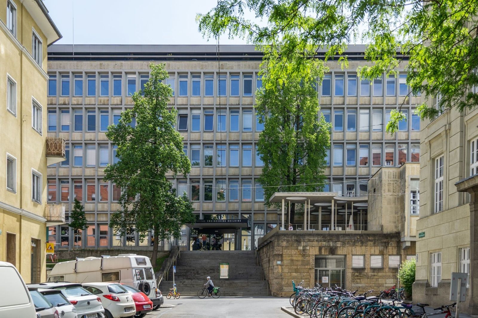 FührungDer Rundgang führt Sie zu Universitätsbauten aus drei Jahrhunderten, die nicht nur unterschiedlichste architektonische Sprachen aufweisen und vereinen, sondern auch widerspiegeln, wie sich das Verständnis von Bildungsräumen und die Anforderungen an sie im Laufe der Zeit verändert haben. Die besuchten Gebäude der TU, Kunstuni und Universität Graz zeigen, wie sich der Humboldt’sche Raum des zurückgezogenen „Für-sich-Lernens“ zu einem Kommunikationsraum entwickelt hat und wie sich die Universitäten und ihre Räume zunehmend für die Stadtgesellschaft öffnen und zu multifunktionalen Orten werden. Von Umbauten denkmalgeschützter Gebäude der Moderne über Einbauten in historische Bauten, über einen Baldachin über ehemaligen Stallungen und einen Twist aus Beton, über die Grazer Schule und den radikalen Umbau einer historischen Bibliothek führt der Spaziergang Sie schlussendlich zum Entwurf für einen der größten Universitätsbauten Österreichs, der ab 2024 an Stelle der heute nicht mehr genutzten Vorklinik realisiert wird.