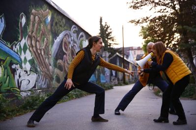 PerformanceWir brechen auf zu einer Expedition, wandern auf Wegen durch den urbanen Raum – ein Baustellenband dient uns als Rettungsseil. Während wir in Siedlungsgebieten navigieren, begegnen wir Orten von Transformation, dem Dialog von Schaffen und Zerstören. Wir lagern an unbeachteten Ecken und hören den Stimmen der BewohnerInnen zu und bewundern die verschlungenen Netzwerke dieses lebenden Organismus.