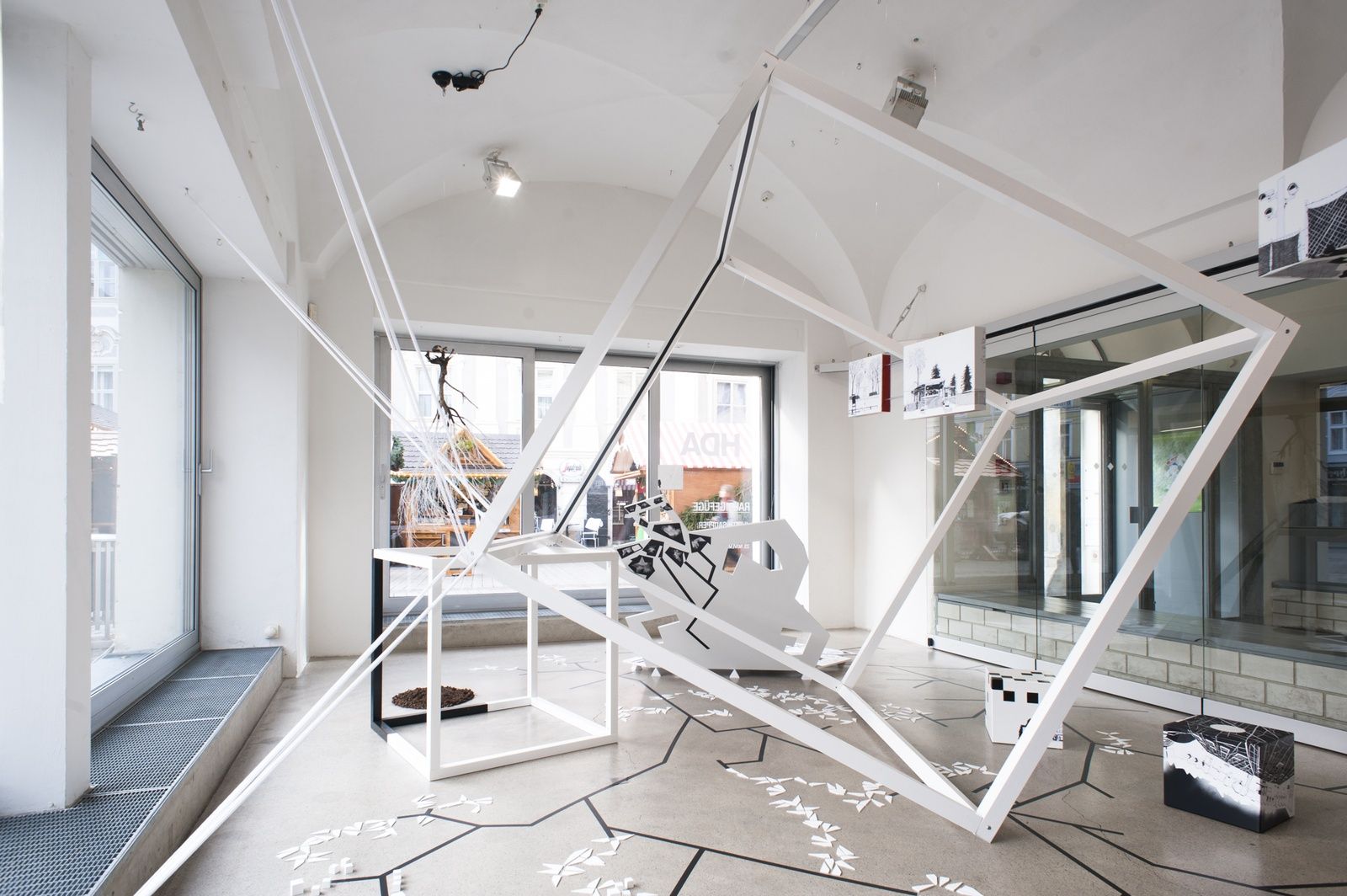AusstellungWie ist der Raum beschaffen, wenn er nicht erfahren wird? Wie kann man Zeit bildlich darstellen? Die Künstlerin Judith Saupper beschäftigt sich mit genau diesen Fragen und erarbeitet in Form von Collagen, sowohl heuristisch als auch künstlerisch, zweidimensionale Arbeiten auf Papier, Modelle von Hochhäusern und Nicht-Orten sowie collagierte Raum-Objekte und Installationen.