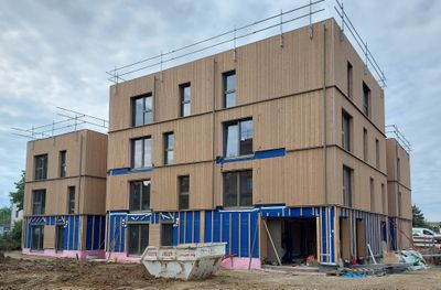 In der Siedlungsstraße, am Areal einer ehemaligen Holzbaufirma in Obergrafendorf, errichtet Alpenland Gemeinnützige Bau-, Wohn- u. Siedlungsgenossenschaft eine Wohnhausanlage in Holz-Hybridbauweise.