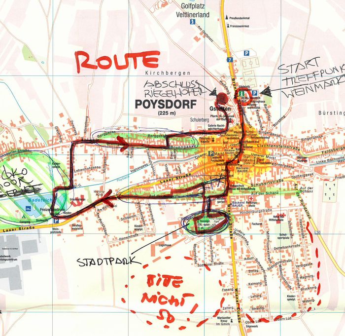 Ein interaktiver „Wahrnehmungsspaziergang“ – in der Tradition des Schweizer Soziologen Lucius Burckhardt - soll andere und neue Blickwinkel, Ausblicke und Wertigkeiten erschließen. Poysdorferinnnen und Poysdorfer sowie interessierte Gäste sind herzlich eingeladen, den Ort mit allen Sinnen zu erkunden. Beim gemeinsamen Gehen, Betrachten und Sprechen entstehen Ideen, die der Gemeinde neue Impulse geben können.