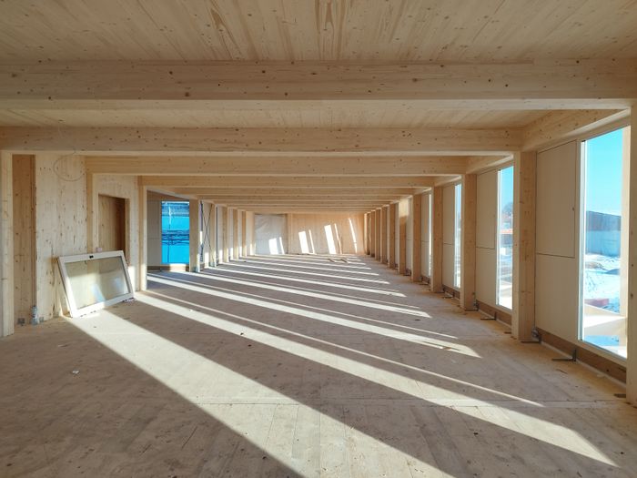 Der Neubau besteht aus einem klar gerasterten Holzbau, der maximale Flexibilität für zukünftige Nutzungsvarianten offenhält und einem massiven Lehmkern, der die Erschließungs- und Servicezone aufnimmt und durch ein innovatives Energiespeicherkonzept das Raumklima reguliert. (Text: Juri Troy)