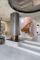 Vertikale Öffnungen verstärken diese Offenheit durch die Blickbeziehungen zwischen den Ebenen. Das Zentrum des Hauses markiert dabei ein kreisrunder Ausschnitt in der Erdgeschossdecke. Unter diesen Öffnungen kann man vom Erdgeschoss durch das mittlere Geschoss mit den Kinderzimmern bis in das oberste Geschoss der Eltern blicken. Auf der mittleren Ebene ist in den runden Ausschnitt ein Liegenetz gespannt. Seitlich begrenzt wird der runde Ausschnitt durch Sichtbetonwände, deren Grundform ein Zylinder ist. Er trägt die eingespannten Stufen ins oberste Geschoss und löst sich in einer prismatischen Verglasung auf, die den obersten Bereich akustisch und thermisch abtrennt. Das oberste Geschoss ist ebenfalls völlig offen gestaltet und mittels Einbauten und raumbildenden Möbeln in Zonen und Bereiche definiert.